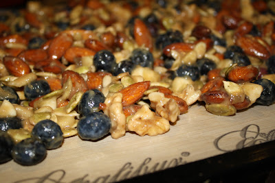 As long as I've got some time to spare, I figure I might as well share this super tasty recipe... hoping it'll keep me busy and my hands out of the kitchen long enough for the granola to finish dehydrating!